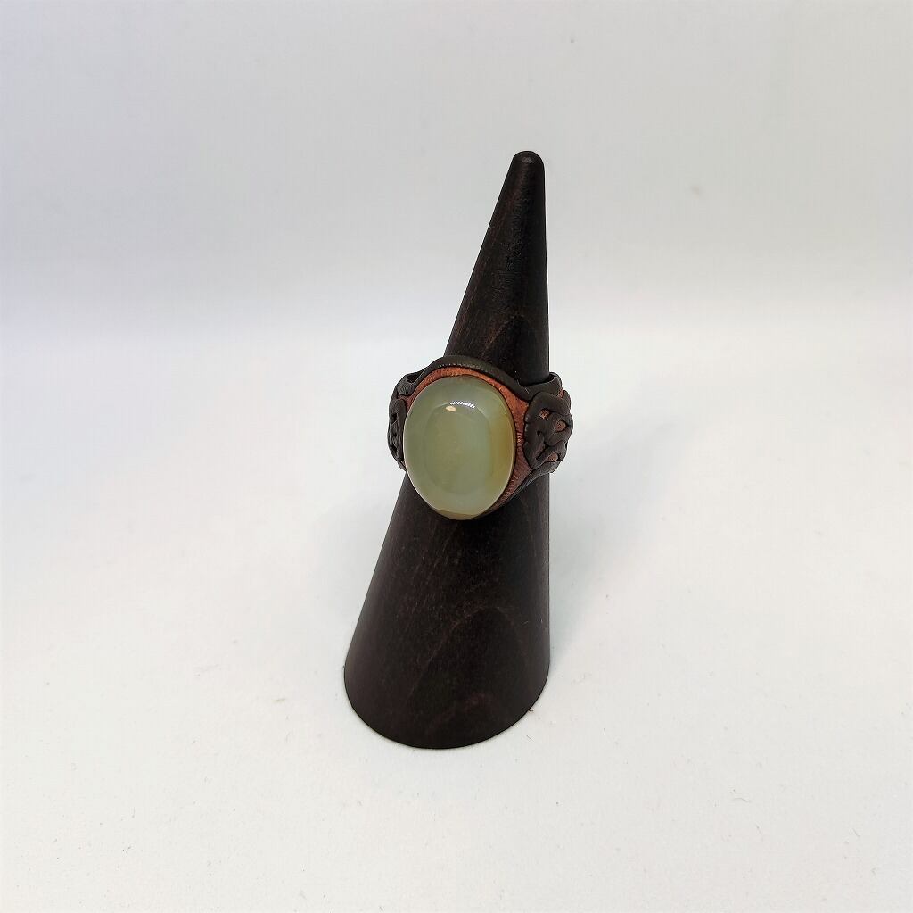 スモーキーなグレー色のアゲートを使い、木粘土で指輪を作成しました。