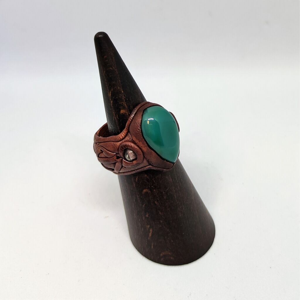 グリーンオニキスを使い、木粘土で指輪を作成しました。