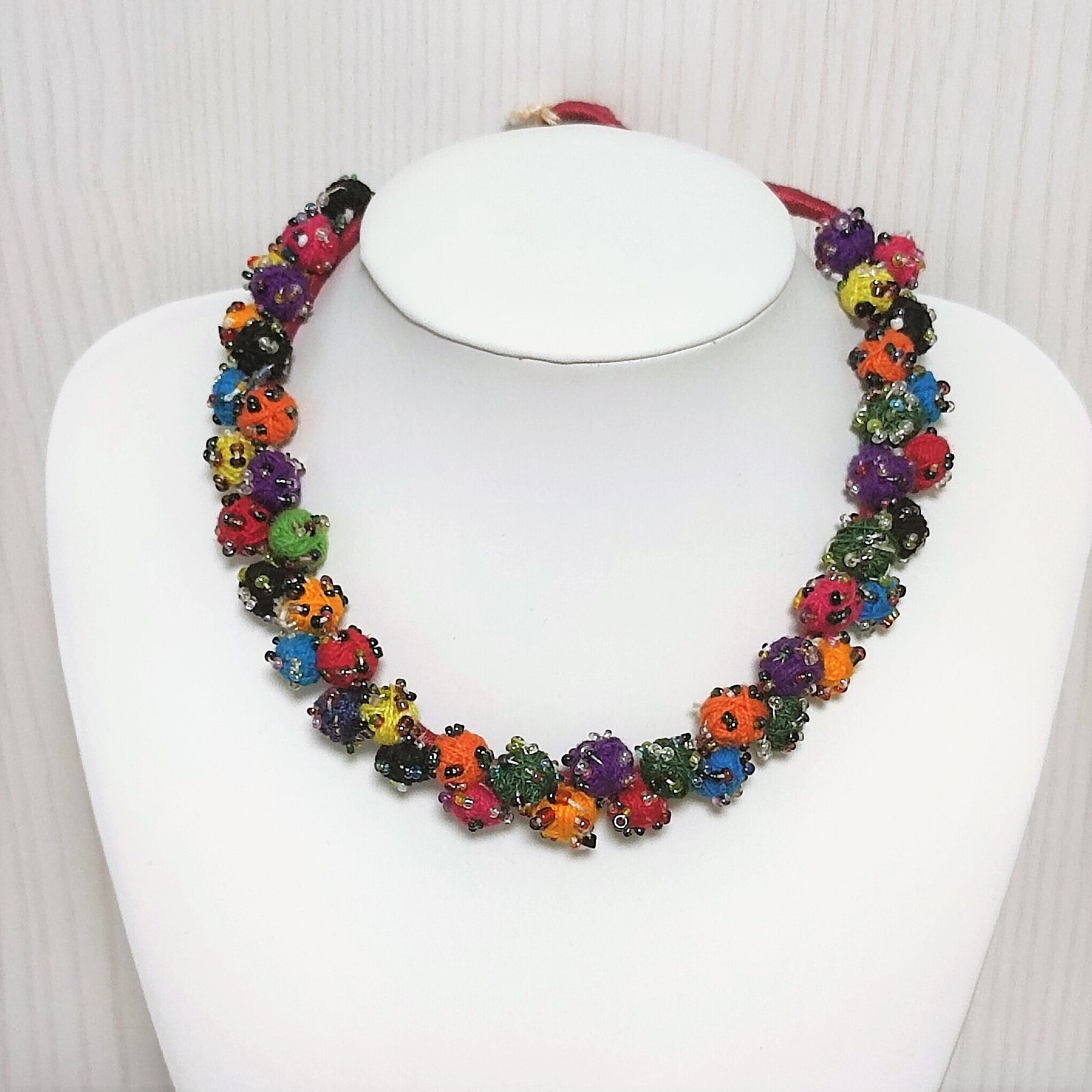 こちらはインドのジャイプール地方の流浪の民、カルベリア族の伝統的なビーズワークを施したチョーカータイプのネックレスです。
