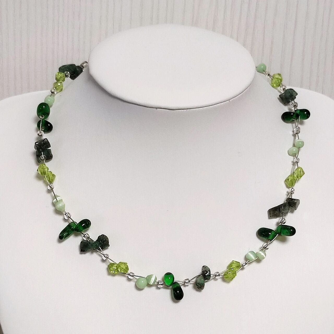 天然石を使用した、大人可愛いネックレス。グリーンのストーンが秋冬のコーディネートにぴったり。